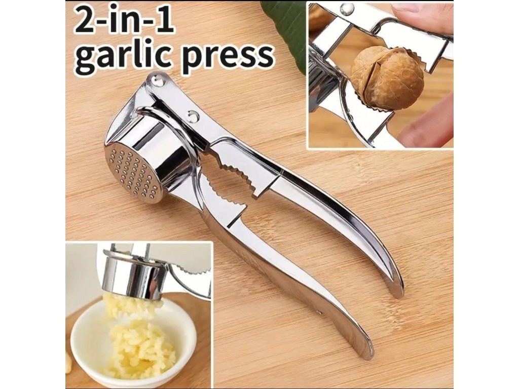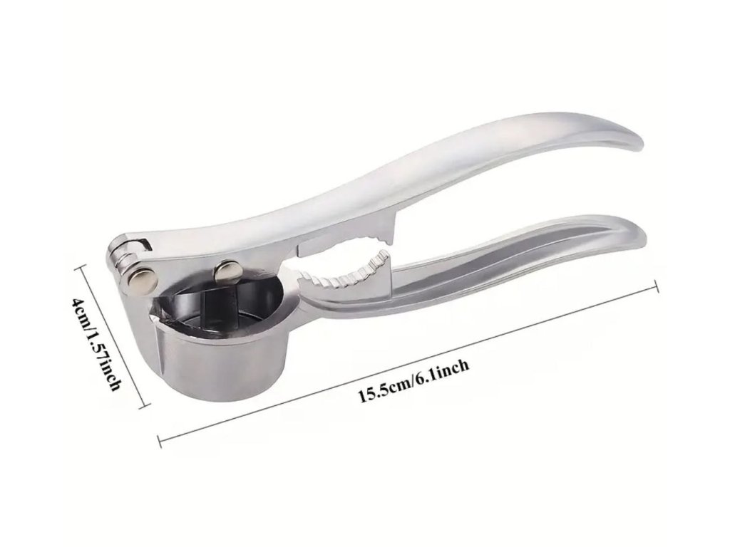 Ruční lis na česnek s ostrým drtičem.