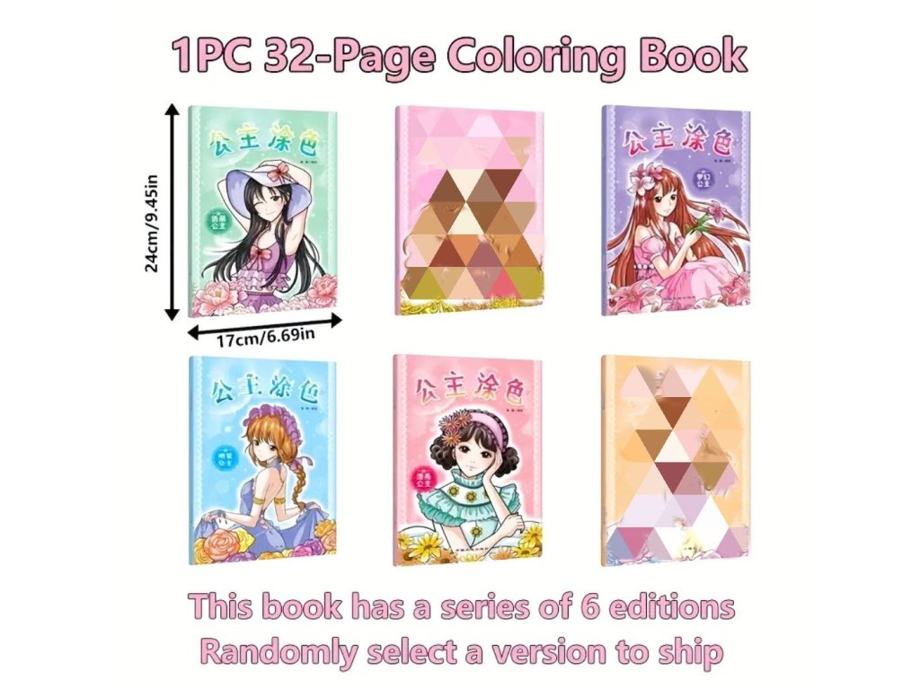 32stránková roztomilá kniha na vybarvování pro dívky od 3 let.